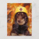 Ein weiteres niedliches Foto in der anthropomorphen Postkartenserie: The Adventures of Ally, The Australian Kelpie dog. Hier ist sie als Feuerwehrfrau mit einem gelben Helm gekleidet. Sie ist mitten in einer Rettungsmission und kämpft gegen Flammen und Rauch. So ein tapferer Hund! Foto von Louise DockerDurchsuchen Sie die Ally-Serie hier