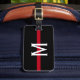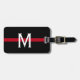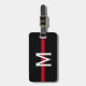 Dieses Gepäckanhänger verfügt über ein dünnes rotes Feuerwehrschiff mit einem horizontalen, roten Streifen auf schwarzem Hintergrund und einem Monogramm, das für Ihre individuelle Gestaltung zunächst in weiß ist.