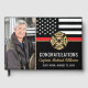 This design features a firemen's flag with black and white stripes, and a thin red line stripe as well. "Congratulations" and a fireman's badge sits above the name of the graduating or retiring firefighter, lieutenant, or chief. Celebrate in style! Customize even further with a photo of the retiring firefighter.