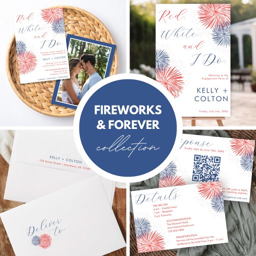 The clean, patriotic design features bold, sparkling fireworks-inspired accents, keeping your wedding suite cohesive and celebratory. Personalize the text to fit your celebration, then coordinate with the matching invitation and other pieces from the Fireworks & Forever collection for a polished look.