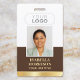 Erstellen Sie ein berufliches Erscheinungsbild mit diesem personalisierten Identifizierungs-Abzeichen. Eine einfache und stilvolle Vorlage mit Ihrem ID-Foto, Namen, Jobtitel, Firmenlogo und scannbarem QR-Code. Der gesamte Text kann an Ihre geschäftlichen Bedürfnisse angepasst oder gelöscht werden. Dieses elegante Design würde viele verschiedene Arbeitsplätze und Berufe Anzug, einschließlich Firmenfachleute, Einzelhändler, Schönheitsberater, Hotelmitarbeiter, kleine Unternehmen, Tagungsmarken und mehr! Bedruckte Farben: dunkelnusbraun und weiß mit einem goldenen Farbverlauf der Imitate.