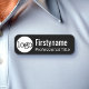 Firmenlogo mit Mitarbeiter und Titel Namensschild