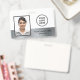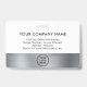 Einfaches und modernes Mitarbeiter Foto ID Abzeichen mit Imitaten silberne Metallstreifen. Passen Sie die Vorderseite mit Ihrem Logo, dem Namen des Fotos der Mitarbeiter und dem Titel Ihres Jobs an. Fügen Sie auf der Rückseite Ihren Firmennamen und andere Informationen hinzu.