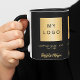 Ein klassischer schwarzer Hintergrund. Personalisieren Sie Ihr Firmenlogo (3), Text und Name (3) und fügen Sie es hinzu.