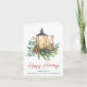Firmenfeiertag gefaltete Grußkarte mit einer Aquarellfarbe einer Weihnachtskerzenlatte in einer Anordnung von saisonalen Kiefern, Eukalyptusbeeren und Grünpflanzen. "Happy Holidays" ist in einem zeitgenössischen roten Drehbuch geschrieben und Sie können Ihren Gruß und den Namen Ihres Unternehmens in einfacher moderner Typografie personalisieren. Fügen Sie im Inneren eine zusätzliche Nachricht von Kundenzufriedenheit und Ihrem Firmenlogo hinzu.