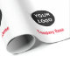 Es ist einfach, Markenverpackungspapier für Firmengeschenke zu erstellen. Ersetzen Sie das Display-Image einfach durch das Logo Ihres Unternehmens. Unter dem Bild befindet sich eine Zeile mit hellrotem Text für den Firmennamen oder eine benutzerdefinierte Nachricht. Das Packpapier ist weiß.