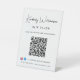Chic Custom Podest Tischschild für Ihr Unternehmen mit Ihrem Namen in einem stilvollen Signatur-Skript und Geschäftstyp unten in einfacher moderner Typografie. Geben Sie Ihre Website URL-Adresse ein, um einen QR-Code für Kunden und Kunden zu erstellen, um nach einer Liste Ihrer Produkte, Dienstleistungen, Stunden usw. zu suchen. Fügen Sie Ihre instagram und facebook Benutzer-ID für Kunden, um Ihnen auf Social Media folgen. Passen Sie die Größe des Schriftartes gegebenenfalls im Entwurfswerkzeug an. Es ist auch ein passendes Zeichen für das Fenster verfügbar - für den Link melden Sie uns.
