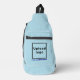 Firmenname und Logo auf der hellblauen Sling-Verpa Crossbody Bag