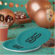 Diese raffinierte und berufliche Platte aus Party weist einen aquamarinen Hintergrund auf. In der Mitte erscheint ein einfacher Text- oder Bildbereich in Monogramm. In der Mitte der Box wird ein Muster-Logo platziert. Sie können diese Teller personalisieren und Ihr eigenes Firmenlogo oder Firmenlogo hinzufügen.