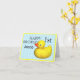 Auf einem blauen und polka dot hintergrundbelassenen Gummischuhn süß und anpassbar.