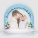 Celebrate your first Christmas as a family of five with this heartwarming custom snow globe design. Featuring a joyful family photo framed by a snowy blue background, playful snowflakes, and festive white Christmas trees, this keepsake captures the magic of your growing family. The handwritten-style curved text adds a personal, cozy touch to your holiday memories. Perfect for commemorating a special milestone or gifting to new parents this season.