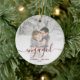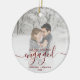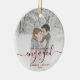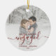 First Christmas Engaged Custom Photo Red Script Keramik Ornament