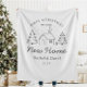 Commemorate a big move and a cozy holiday all at once. This modern, black-and-white “First Christmas in Our New Home” blanket features a minimalist winter cottage illustration with snow and pines. Personalize the couple’s names and year to create a keepsake throw for newlyweds, first-home owners, or a festive housewarming gift. Neutral styling fits any décor and looks beautiful draped on the sofa for holiday photos.