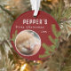 Erste Weihnachtsferien Kätzchen 2 Foto Keepake Ornament. Niedliches erstes Weihnachtskätzchen Foto mit Weihnachtsbaumästen. Personalisieren Sie das Ornament mit dem Foto Ihrer Katze auf der Vorderseite und auf der Rückseite des Ornaments, Name und Jahr - geben Sie Ihr Lieblings-Kitten-Foto ein. Sie können dieses maßgeschneiderte Ornament für jedes Haustier verwenden. Ein schöner und niedlicher Urlaubsort für einen Katzenbesitzer.