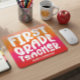 Brighten up your workspace with our First Grade Teacher mousepad, featuring a white typography design on an orange and red ombre background. You can even personalize it with your name to make it uniquely yours. If you have any questions or requests regarding this design, please contact us via the chat; we’d be happy to help!