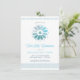 Cette invitation à la communion sacrée pour garçons de 4,5 po x 6,25 po, design et moderne, présente une fenêtre de l'église rosette en vitrail et un design décoratif complémentaire bleu et vert sur les bords supérieur et inférieur de l'invitation. La couleur et le texte de l'arrière - plan peuvent être customisés pour votre occasion religieuse spéciale.