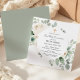 Modern botanical design features ivory white roses nestled in sage green eucalyptus leaves. Your First Communion celebration details are placed in the center on a white circle.
