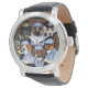 Uhr, Vintage Männeruhr mit schwarzem Lederarmband
