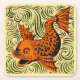Fish Tile Graphic - Dieser antike orangefarbene Fisch ist ein Grafikdesign, das auf einer Viktorianischen Kachel des 18. Jahrhunderts des berühmten Kunsthandwerkers William De Morgan basiert. Das Gemälde basiert auf der Kunst- und Handwerksbewegung und blickt zurück zu den alten Fischkacheln aus Griechenland und Rom.