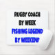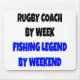 Dieses humorvolle Textdesign mit der Phrase "Rugby Coach by Week Fishing Legend by Weekend" ist perfekt für jeden, der eine Rugby-Coach-Woche, aber eine Angellegende am Wochenende ist.