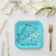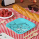 Fischen Sie auf einem blauen Papierteller können Sie mit Ihrem Namen und dem Essen, das Sie bringen zu einem Leckerbissen Abendessen personalisieren. Holen Sie sich einen Strauß mit Ihrer Spezialität