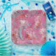 Diese abstrakte, grafische Kunst porträtiert, eine farbenfrohe, bunte Reihe von Fischen schwimmen, in einem Becken von lebhaften Farben-Rosa, Rot, lila, Blau und Gold.