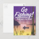 Fischen! Vintage oder Retro-Stil Reiseplakate eines Fischers auf einem See während des Abends Sonnenuntergang.
