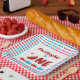 Erstgeburtengeschenke mit rotem und blauem Fisch und Fischbrotbällchen