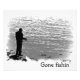 Lasst uns davon wegkommen und angeln gehen! Einfache Anpassung oder Entfernung des Textes auf diesem Foto, das ein Schwarz-Weiß-Bild eines einsamen Fischers zeigt, der auf einem Felsvorsprung am Seneca See in Genf, New York stehend ist. Der Text lautet: Gone fisin'