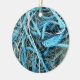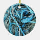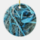 Ein farbenfroher Entwurf des Fischernetzes und leuchtend blaues Seil aus einem Boot, das auf dem Hafensteg gelagert ist.