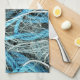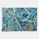 Ein farbenfroher Entwurf des Fischernetzes und leuchtend blaues Seil aus einem Boot, das auf dem Hafensteg gelagert ist.