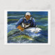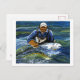 Ein Gemälde eines Fischers im Wasser mit einem Lachs.