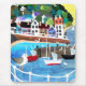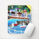 Ein hochwertiges Mousepad mit handgemaltetem Papier Collage Design eines kleinen Hafens mit Fischerbooten und Möwen. Siehe auch passende Grußkarten, Geschenke und Bekleidung