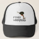 Lustige Fischenkappe für alle Fischer und Fisherwomen. FischeWhisperer im Text mit einem farbenreichen Fischenköder nahe der Spitze.