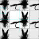 Schwarze Silhouette einer Fliegenfliege, um sich mit Ihrem eigenen Gruß, Namen, Nachricht usw. anzupassen
