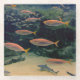 Unterwasserfoto eines Schuhs aus rosa/orangefarbenen Untersetzer.