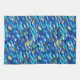 Fischschule in einem tiefen, blauen Ozean in den Farben Blau, Türkis, Gold und Weiß
