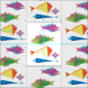 Niedliche Fischkunst in hellblauen, rosa, orangefarbenen Tönen und lila