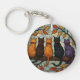 Five Cats on a Tree Branch Stained Glass Style Schlüsselanhänger