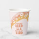 Retro inspiriert Five ist ein Vibe Groovy 5. Geburtstag Papiertassen mit 70er-Stil und boho Schriftart und Farben.