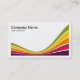 Un modèle de carte de visite avec un joli ruban comme motif composé de cinq bandes dans une palette de couleurs attrayante. Le même motif est également utilisé au verso de la carte, sauf qu'il est disposé verticalement et à droite en équilibrant le texte qui est disposé sur la gauche.Nom de l'entreprise et type d'entreprise sur le devant de la carte. nom, adresse téléphonique, email et adresse web sont disposés à l'envers.