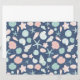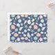 verschiedene Arten von handgemalten Muscheln auf blauem Hintergrund