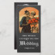 Die dunkel skurrile, vintage Illustration eines verliebten Skelettpaares trägt eines Ihrer stationären Themen in den Hochzeitstag. Der herbstliche Blumenkranz umgibt Ihr Paar Foto auf der Rückseite des Programms fügt etwas düstere Farbe hinzu. Treten Sie ein in ein Reich, in dem gotische Elemente mit moderner Ästhetik in diesem Programm und dem Rest unserer Vintage Skeleton Gothic Hochzeitssuite und -suite vereinen.