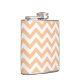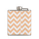 Hip et moderne Tendance Chevron Flask. Cette fiole cool présente un motif en zag zig de chevron en corail et blanc. Ajoutez du texte à cette conception pour lui donner une touche personnelle.