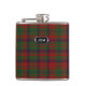 Flacon potable élégant avec le motif vert et rouge traditionnel de plaid de tartan de Matheson de clan. Personnalisez le monogramme de trois lettres, sur le métal regardant la plaque, pour adapter à vos besoins. Grands idée de cadeau pour tout type et particulièrement grand comme cadeau de noce pour des garçons d'honneur.