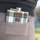 Flacon beau avec le motif rouge, blanc, jaune, et vert classique de plaid de tartan de robe de Stewart. Personnalisez le monogramme de trois lettres, sur le métal regardant la plaque, pour adapter à vos besoins. Grands idée de cadeau pour tout type et particulièrement grand comme cadeau de noce pour des garçons d'honneur.