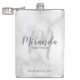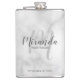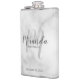Ajoutez une touche personnelle à votre mariage avec une fiole de demoiselle d'honneur personnalisée. Ce flacon contient le nom personnalisé de la demoiselle d'honneur dans le style de police de script moderne gris et monogramme dans le style de police de script moderne gris clair comme arrière - plan avec titre et date de mariage dans le style de police moderne sans serif gris sur l'arrière - plan de marbre blanc. Parfait aussi pour femme de ménage d'honneur, mère de la mariée et plus.
