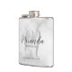 Ajoutez une touche personnelle à votre mariage avec une fiole de demoiselle d'honneur personnalisée. Ce flacon contient le nom personnalisé de la demoiselle d'honneur dans le style de police de script moderne gris et monogramme dans le style de police de script moderne gris clair comme arrière - plan avec titre et date de mariage dans le style de police moderne sans serif gris sur l'arrière - plan de marbre blanc. Parfait aussi pour femme de ménage d'honneur, mère de la mariée et plus.
