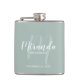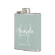 Ajoutez une touche personnelle à votre mariage avec une fiole de demoiselle d'honneur personnalisée. Ce flacon contient le nom personnalisé de la demoiselle d'honneur dans le style de police de script moderne blanc et le monogramme dans le style de police de script moderne vert sage comme arrière - plan avec titre et date de mariage en blanc moderne sans serif style de police sur l'arrière - plan vert sage. Parfait aussi pour femme de ménage d'honneur, mère de la mariée et plus.