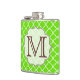 Lime Green Quarterfoil Lattice Trimestre Foil Monogramme Tissu personnalisé initial Flacon Motif Whiskey